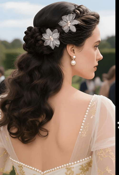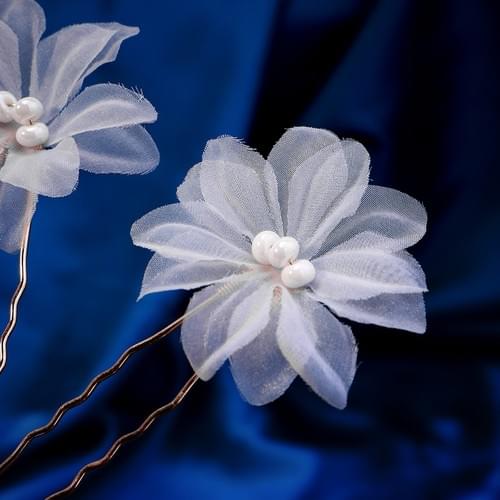 Handmade Fabric Flower Hairpin Set For Brides. Beautiful White Flowers Wedding accessory.