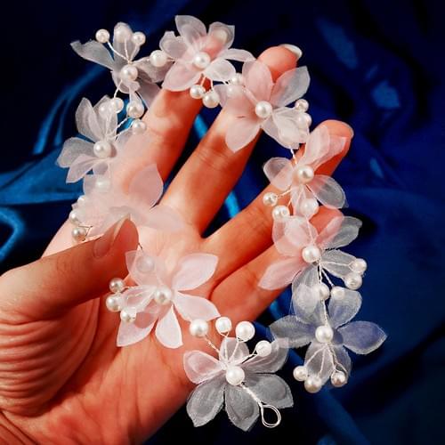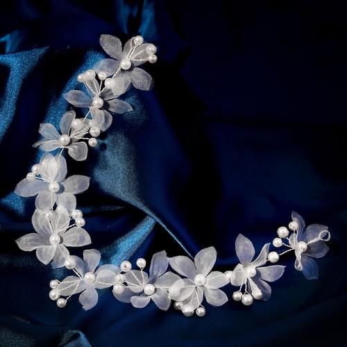 White Flower Bridal Headband. Forest Style Soft Handmade Pearl W.reath