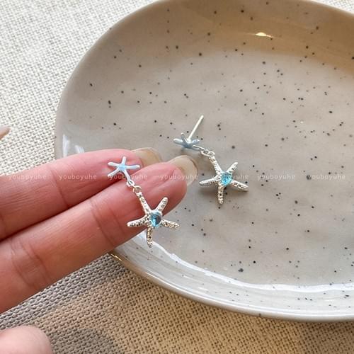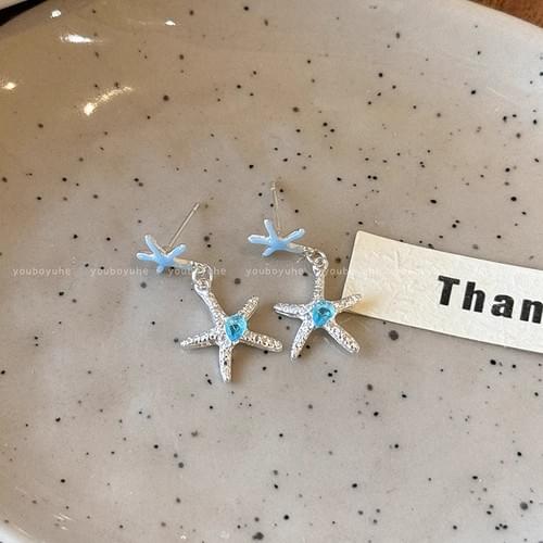 Ocean Heart Blue Zircon Starfish Tassel Earrings. Unique Design Luxury Feel Alloy and Zodiac Style Earrings.